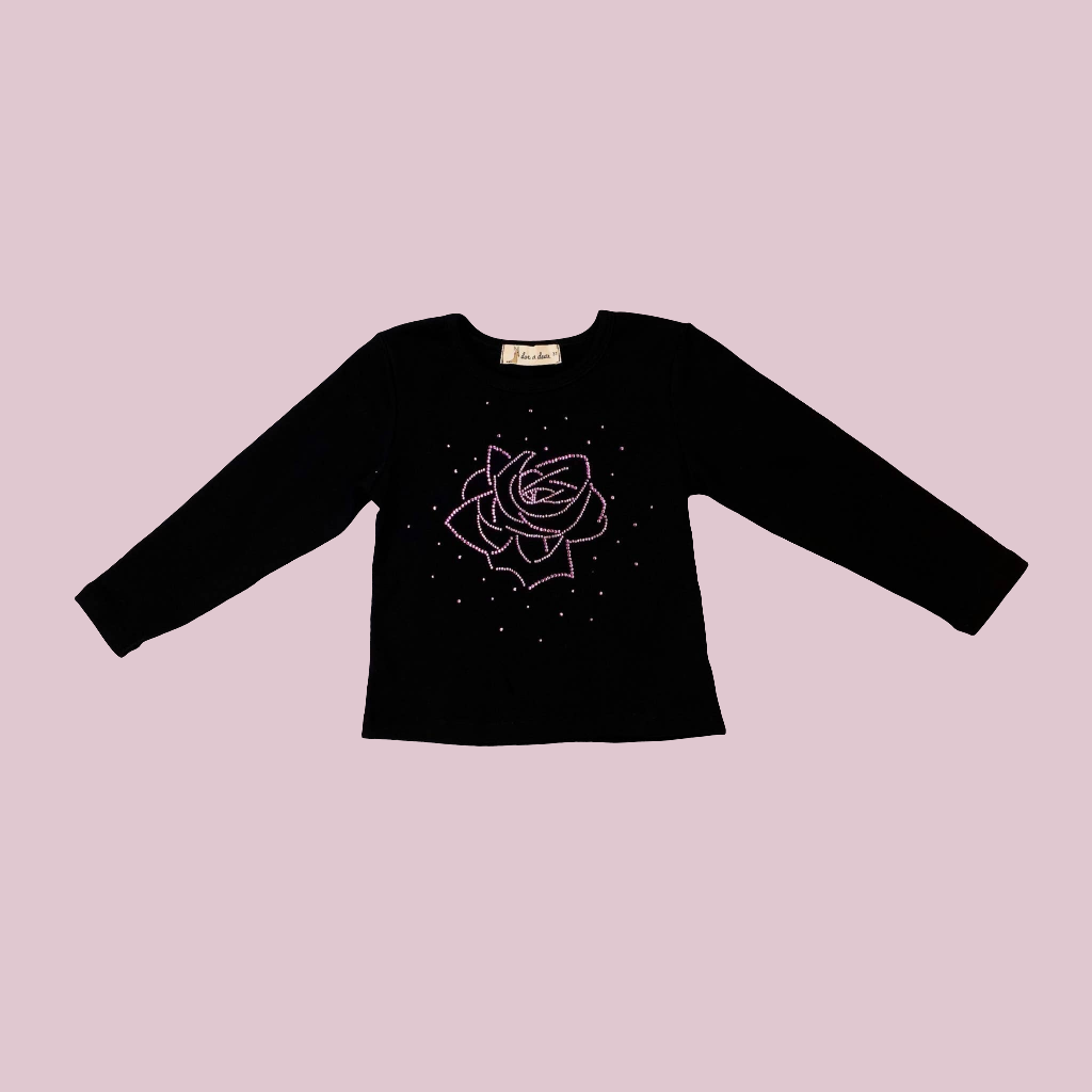 Black top adorned with pink rhinestones
